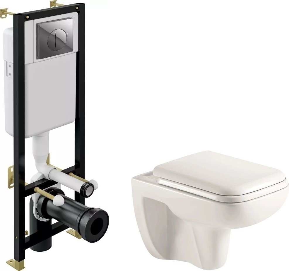 Комплект: инсталляция Cersanit Black IN-BLACK-Cg-w с кнопкой Leon, хром глянцевый + подвесной безободковый унитаз Azario Pavia 2005, сиденье с крышкой микролифт.