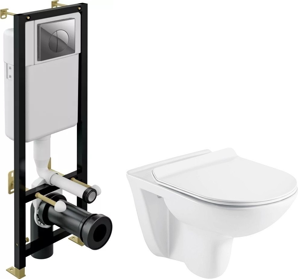 Комплект: инсталляция Cersanit Black IN-BLACK-Cg-w с кнопкой Leon, хром глянцевый + подвесной безободковый унитаз Azario Pavia 2142, сиденье с крышкой микролифт.