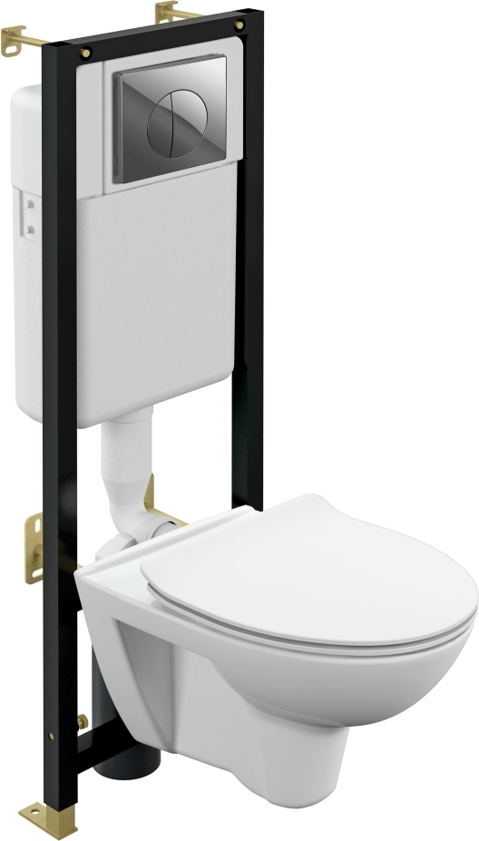 Комплект A64231: инсталляция Cersanit Black IN-BLACK-Cg-w с кнопкой Leon, хром глянцевый + подвесной безободковый унитаз Cersanit Parva New Clean On S-MZ-PARVA-COn-DL-w, сиденье с крышкой микролифт.