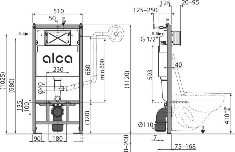 Инсталляция для подвесного унитаза Alcaplast AM101/1120-4:1 RU M570-0001, кнопка смыва белая.