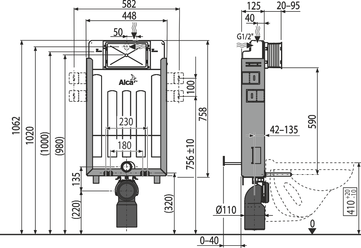Инсталляция для подвесного унитаза Alcaplast AM115/1000 Renovмodul