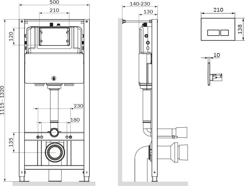 Максимально полная комплектация - все необходимые крепления патрубки звукоизолирующая прокладка в комплекте. Вертикальные ребра жесткости в конструкции рамы – дополнительная опора в месте давления керамики на стену. Благодаря им инсталляция более универсальная и подходит для унитазов любых размеров включая унитазы с небольшой контактной поверхностью. Нет необходимости докупать дополнительные аксессуары для монтажа таких унитазов. Благодаря цельному стальному профилю 40*40 мм толщиной 2 мм инсталляция выдерживает нагрузку до 400 кг. Цельный бесшовный бачок из полиэтилена с защитой от конденсации. Комфортное использование благодаря заливному клапану с низким уровнем шума - менее 20 Дб. В комплекте пневматическая двухрежимная клавиша из ABS пластика в цвете никель матовый.