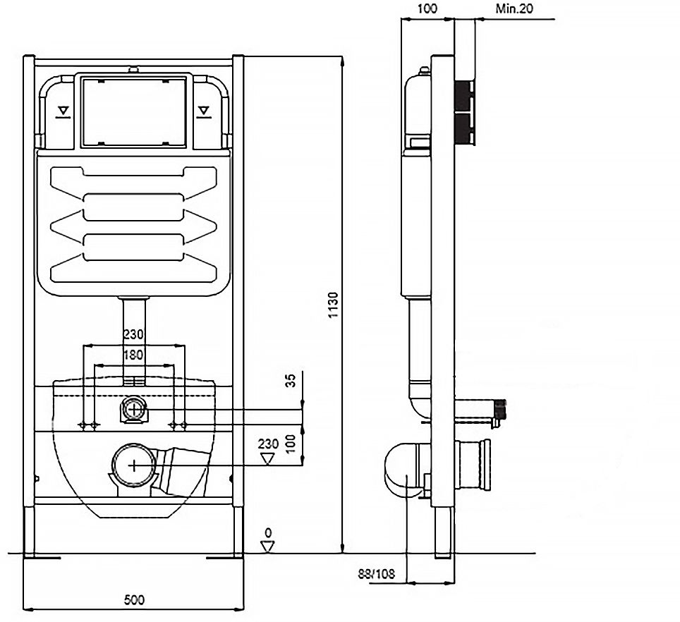 Инсталляция для подвесного унитаза Azario Forte AZ-100-100F. Кнопка смыва приобретается отдельно.