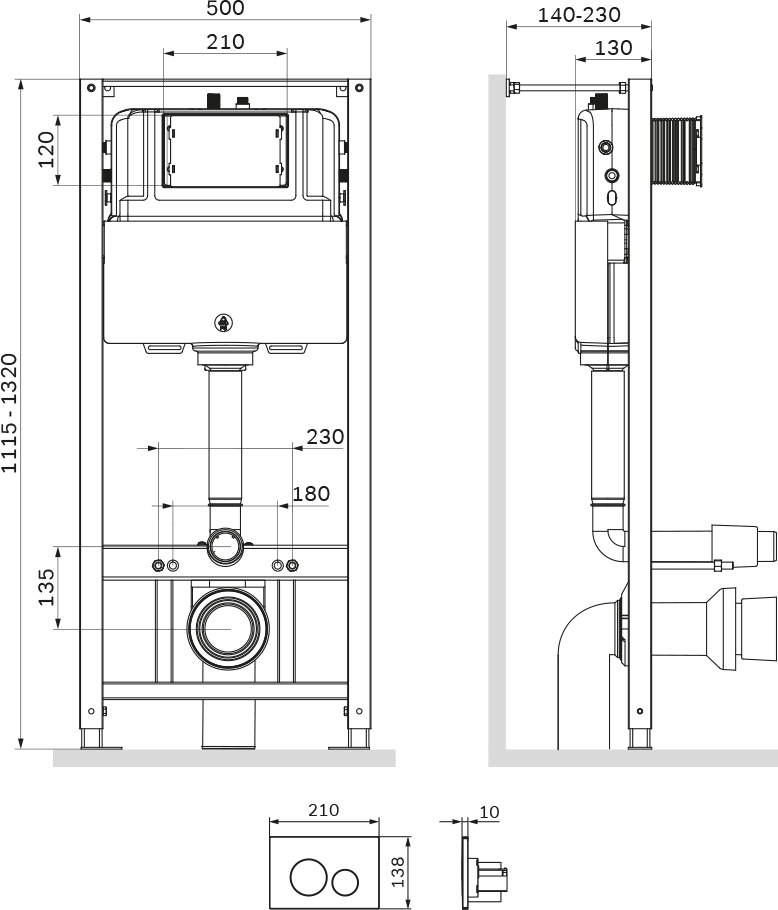 Максимально полная комплектация - все необходимые крепления патрубки звукоизолирующая прокладка в комплекте. Вертикальные ребра жесткости в конструкции рамы – дополнительная опора в месте давления керамики на стену. Благодаря им инсталляция более универсальная и подходит для унитазов любых размеров включая унитазы с небольшой контактной поверхностью. Нет необходимости докупать дополнительные аксессуары для монтажа таких унитазов. Благодаря цельному стальному профилю 40*40 мм толщиной 2 мм инсталляция выдерживает нагрузку до 400 кг. Цельный бесшовный бачок из полиэтилена с защитой от конденсации. Комфортное использование благодаря заливному клапану с низким уровнем шума - менее 20 Дб. В комплекте пневматическая двухрежимная клавиша из ABS пластика в цвете хром глянцевый.