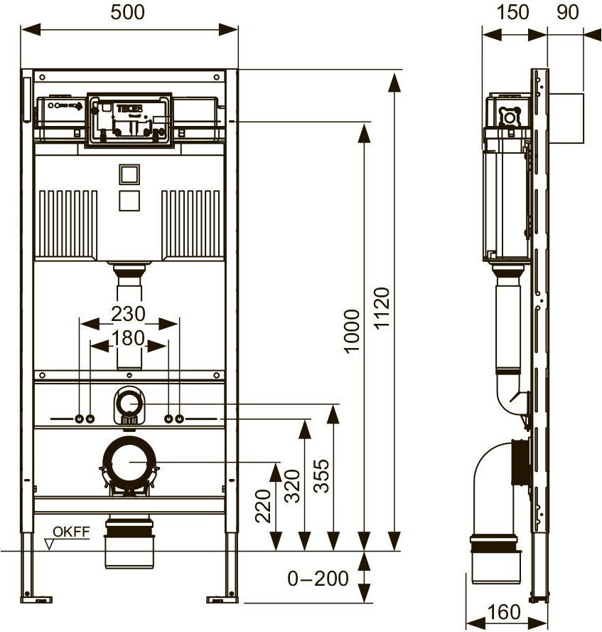 Инсталляция для подвесного унитаза TECEprofil (h = 1120 мм) 9300302.