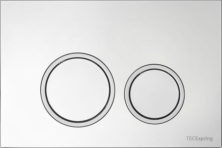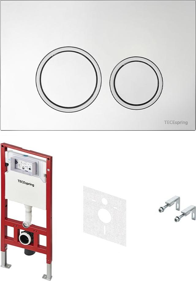 Инсталляция для подвесного унитаза TECEspring со звукоизоляционной прокладкой и панелью смыва, цвет кнопки хром глянцевый.