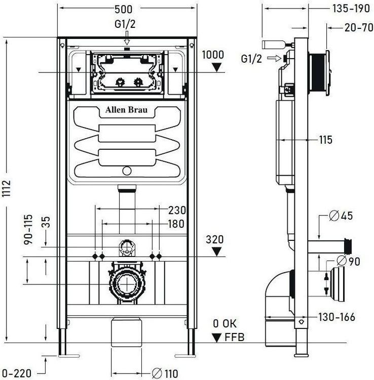 Инсталляция для унитаза Allen Brau Pneumatic 9.11100.20. Кнопка смыва приобретается отдельно.