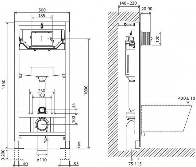 - Гарантия: на каркас инсталляции и бачок -10 лет с даты продажи, на арматуру бачка - 2 года с даты продажи, сливные и наливные клапана - 5 лет, на клавишу смыва - 2 года с даты продажи