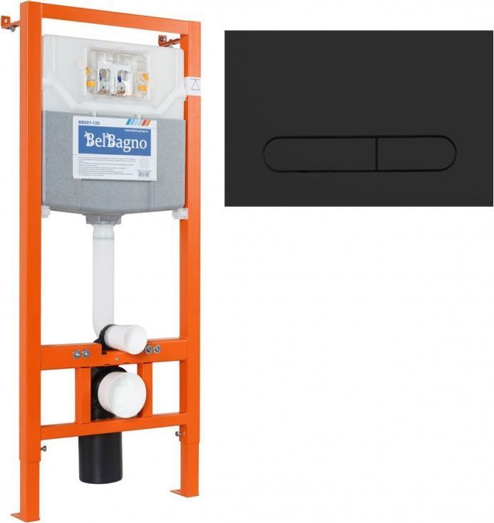 Инсталляция для унитаза BelBagno BB001-120/BB007-PR-NERO.M (кнопка Prospero, цвет черный матовый)