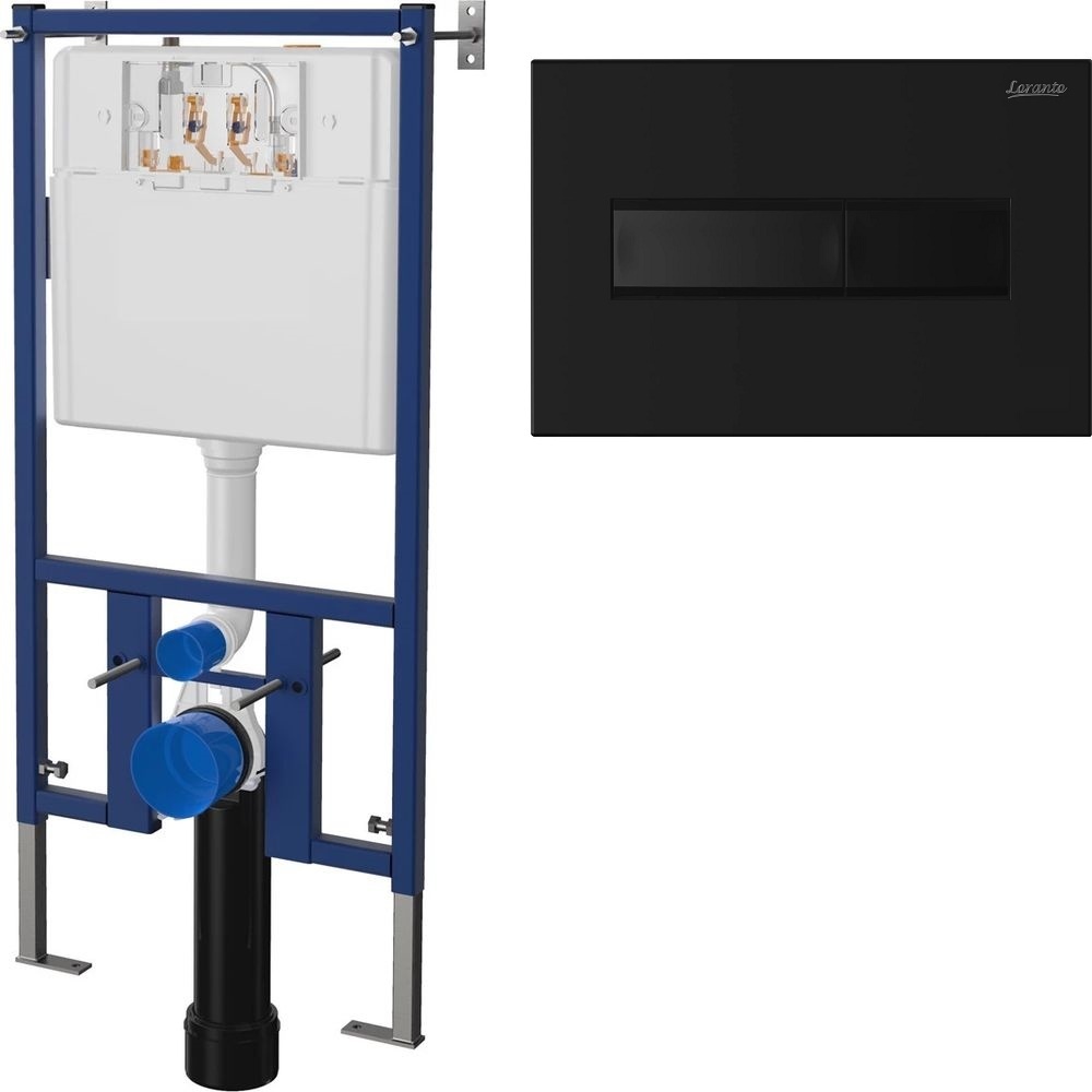 Инсталляция для унитаза Loranto 4501 с металлической рамой, двойной системой слива 3/6 литров. Кнопка смыва чёрная матовая.