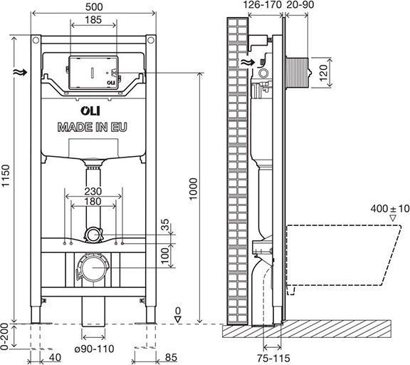 Инсталляция для унитаза Oli 120 177306. Кнопка смыва приобретается отдельно.