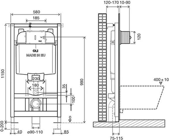 Инсталляция для унитаза Oli 74 601801mSl00 (кнопка смыва Slim, хром глянец)
