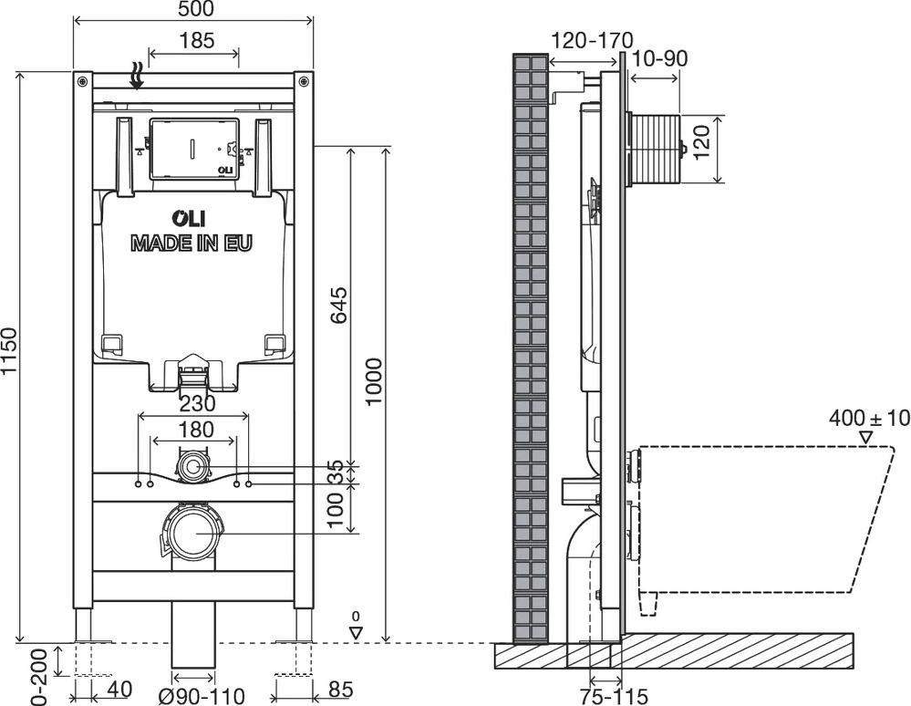 Инсталляция для унитаза Oli 80 300573pKA00 (кнопка смыва Karisma, хром глянец)