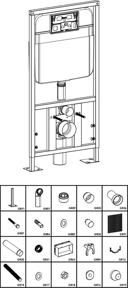 Инсталляция для унитаза SantiLine Adell SL-03, кнопка черная матовая, овальная.