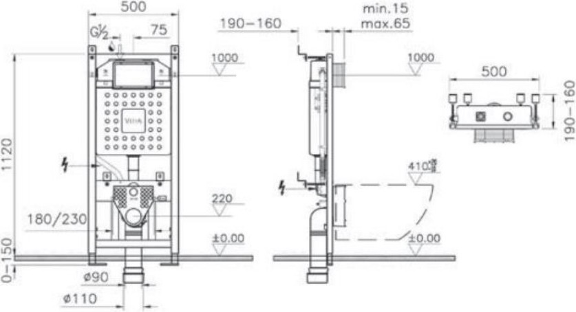 - Механическая Инсталляция VitrA, совместима с любыми моделями подвесных унитазов