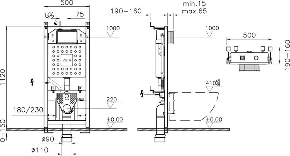 Инсталляция для унитаза Vitra V12 762-5800-01, 3/6 л, глубина установки 12 см. Все крепежи в комплекте (к стене и к полу).