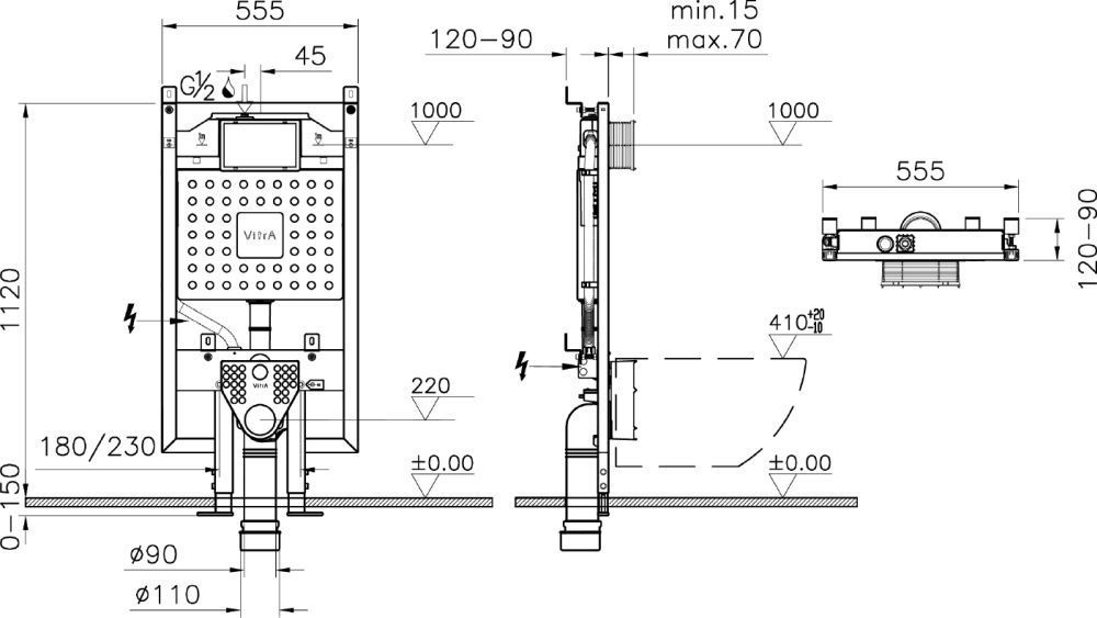 Инсталляция для унитаза Vitra V8 768-5800-01, 3/6 л, глубина установки 9-12 см. Все крепежи в комплекте (к стене и к полу).