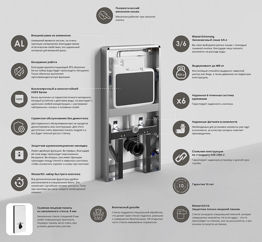 Инсталляция для унитаза WasserKraft Naab 86TLT.040.PE.WH