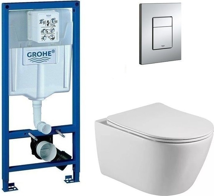 Инсталляция с подвесным унитазом комплект: Grohe Rapid SL 38772001 с подвесным безободковым унитазом Aquatek Бетта AQ1253W-00 сиденье микролифт, крепление, кнопка смыва хром