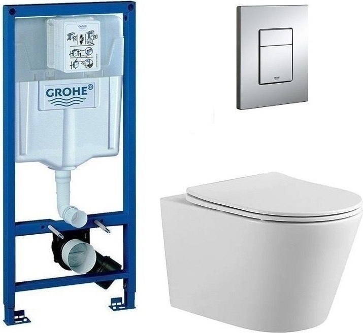 Инсталляция с подвесным унитазом комплект: Grohe Rapid SL 38772001 с подвесным безободковым унитазом Aquatek Вега AQ1905-00 сиденье микролифт, крепление, кнопка смыва хром
