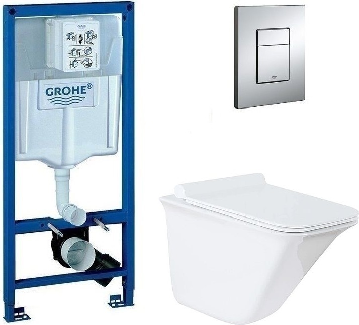 Инсталляция с подвесным унитазом комплект: Grohe Rapid SL 38772001 с подвесным безободковым унитазом Azario Felice 0054 сиденье микролифт, крепление, кнопка смыва хром