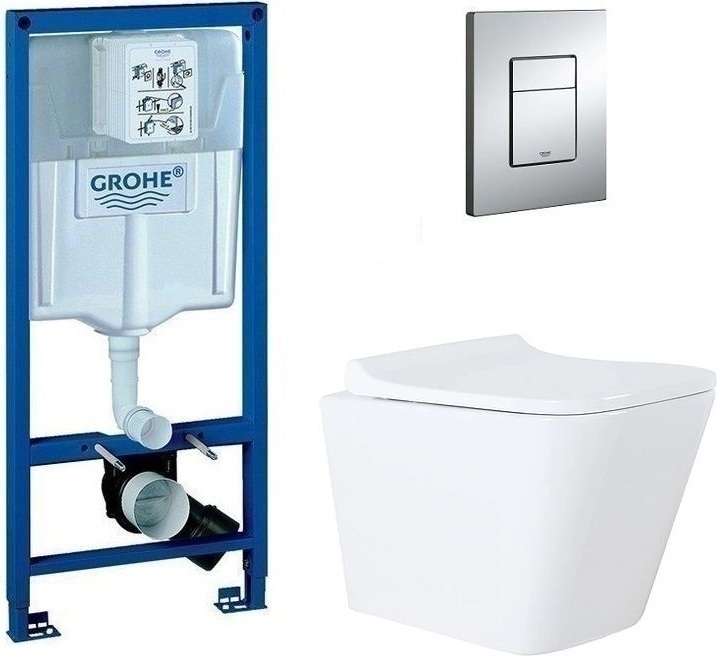 Инсталляция с подвесным унитазом комплект: Grohe Rapid SL 38772001 с подвесным безободковым унитазом Azario Teramo 0052 сиденье микролифт, крепление, кнопка смыва хром