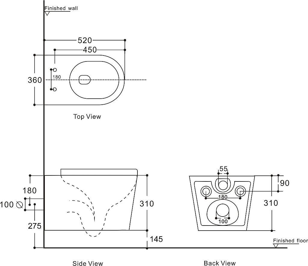 - подключение воды слева, справа и сзади