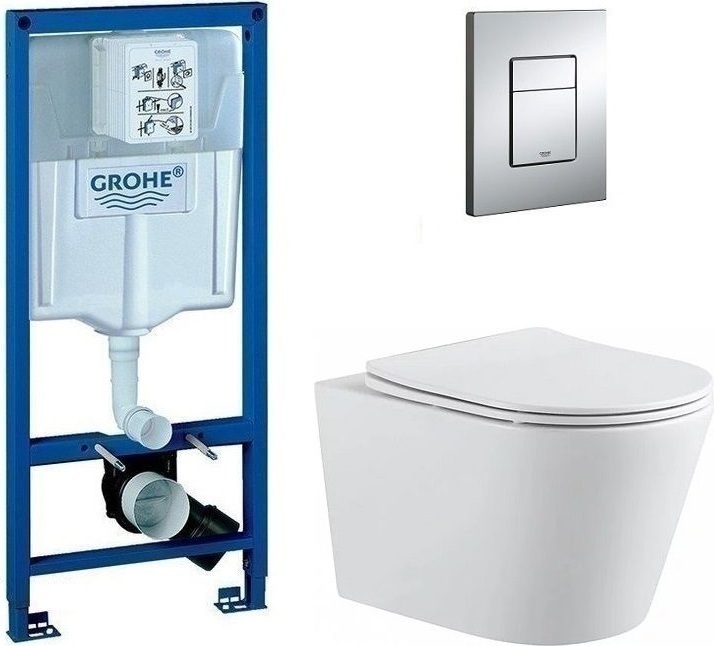 Инсталляция с подвесным унитазом комплект: Grohe Rapid SL 38772001 с подвесным унитазом Aquanet Rimless Atago 2.0 W LX-1905 сиденье микролифт, крепление, кнопка смыва хром