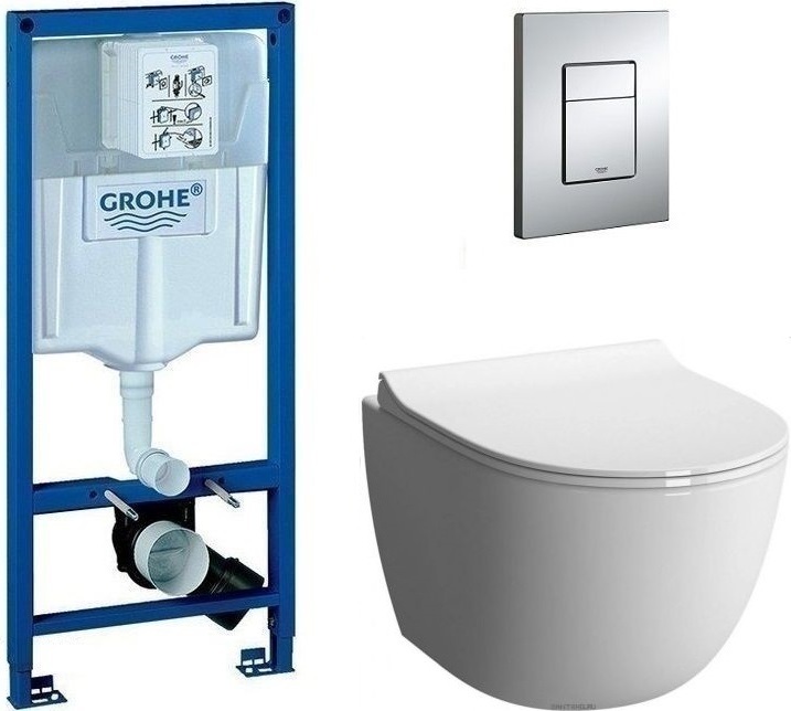 Инсталляция с подвесным унитазом комплект: Grohe Rapid SL 38772001 с подвесным унитазом Vitra Sento Rim-ex 7748B003-0075 сиденье микролифт, крепление, кнопка смыва хром