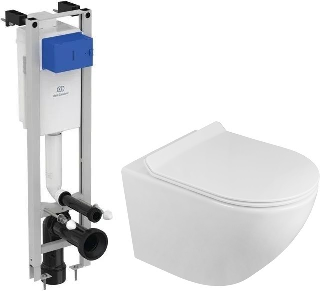 Инсталляция Ideal Standard с подвесным безободковым унитазом Azario Grado, сиденье с крышкой микролифт. Кнопка смыва приобретается отдельно.