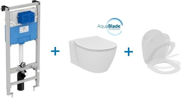 Инсталляция для унитаза с кнопкой Ideal Standard + унитаз подвесной безободковый Tesi AquaBlade, сиденье с крышкой микролифт.