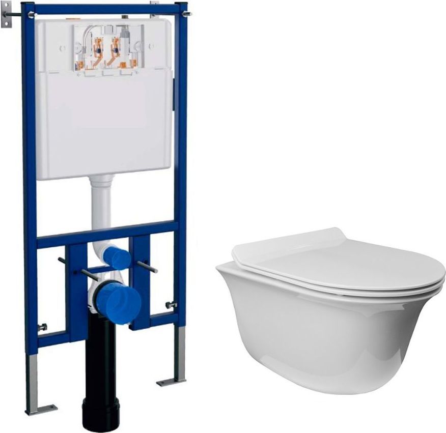 Инсталляция Loranto с подвесным безободковым унитазом Azario Felice 4501+AZ-0051, сиденье с крышкой микролифт, кнопка смыва приобретается отдельно.