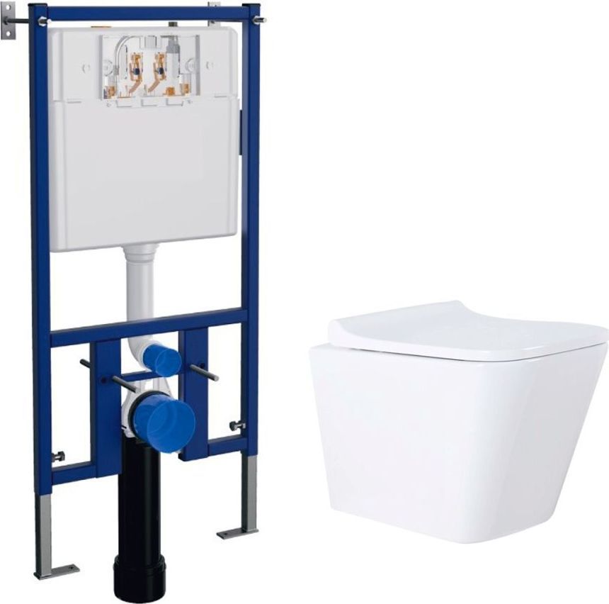Инсталляция Loranto с подвесным безободковым унитазом Azario Teramo 4501+AZ-0052, сиденье с крышкой микролифт, кнопка смыва приобретается отдельно.