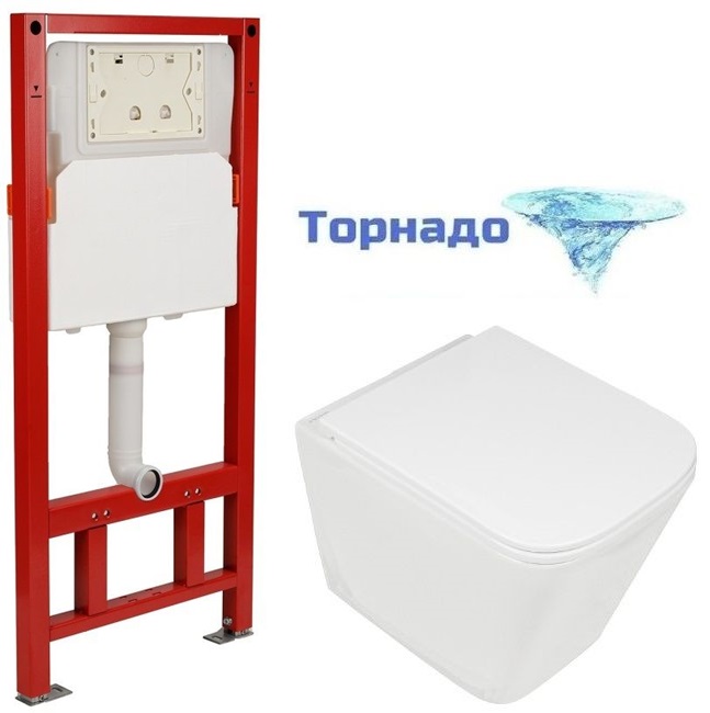Инсталляция с подвесным безободковым унитазом AN Bitt сиденье микролифт, крепление (система смыва Торнадо)