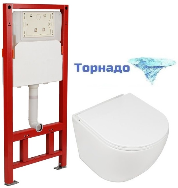 Инсталляция с подвесным безободковым унитазом AN Sky сиденье микролифт, крепление (система смыва Торнадо)