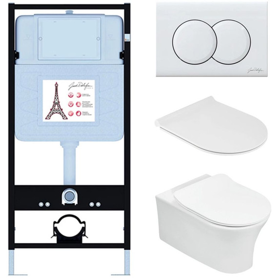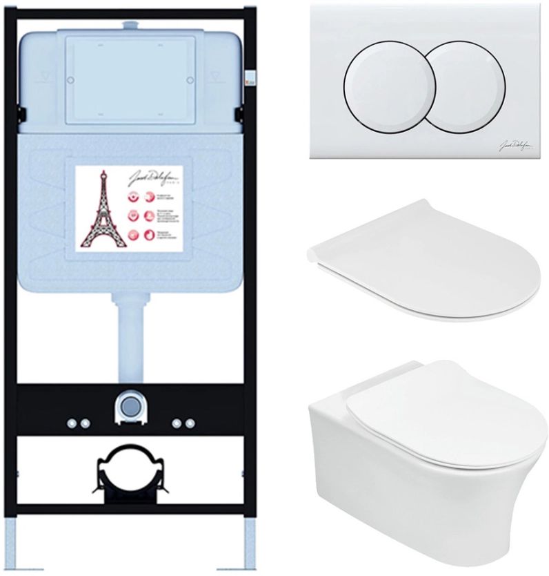Инсталляция с подвесным безободковым унитазом Jacob Delafon Aleo E21731RU-00, сиденье с тонкой крышкой микролифт