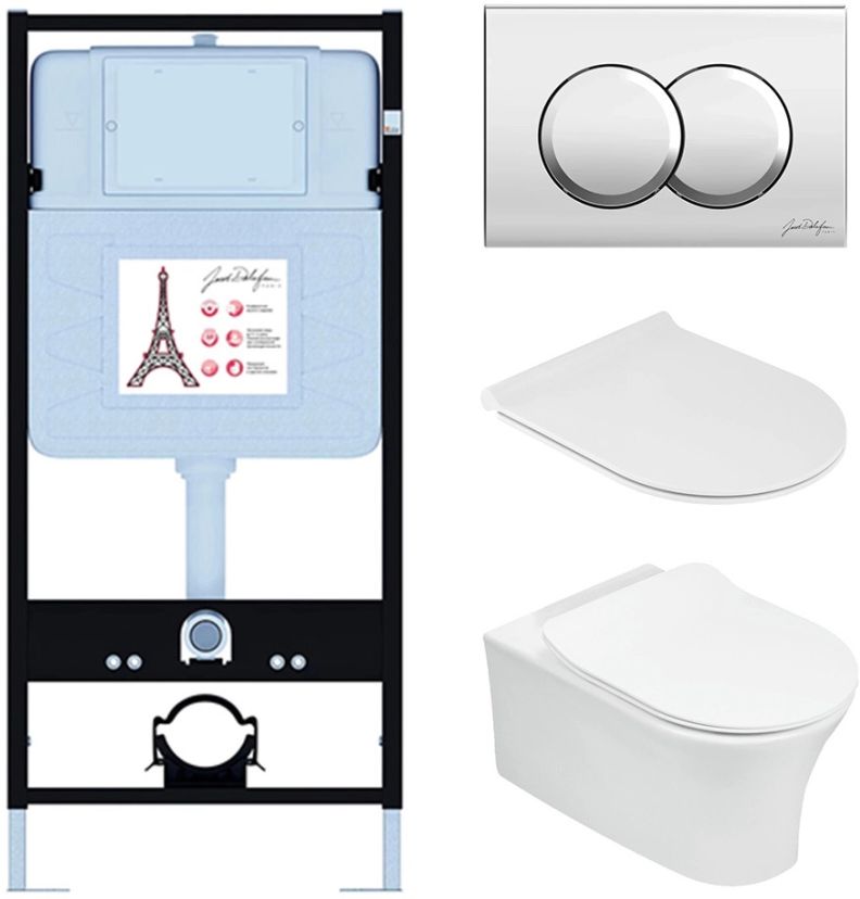 Инсталляция с подвесным безободковым унитазом Jacob Delafon Aleo E21731RU-CP, сиденье с тонкой крышкой микролифт
