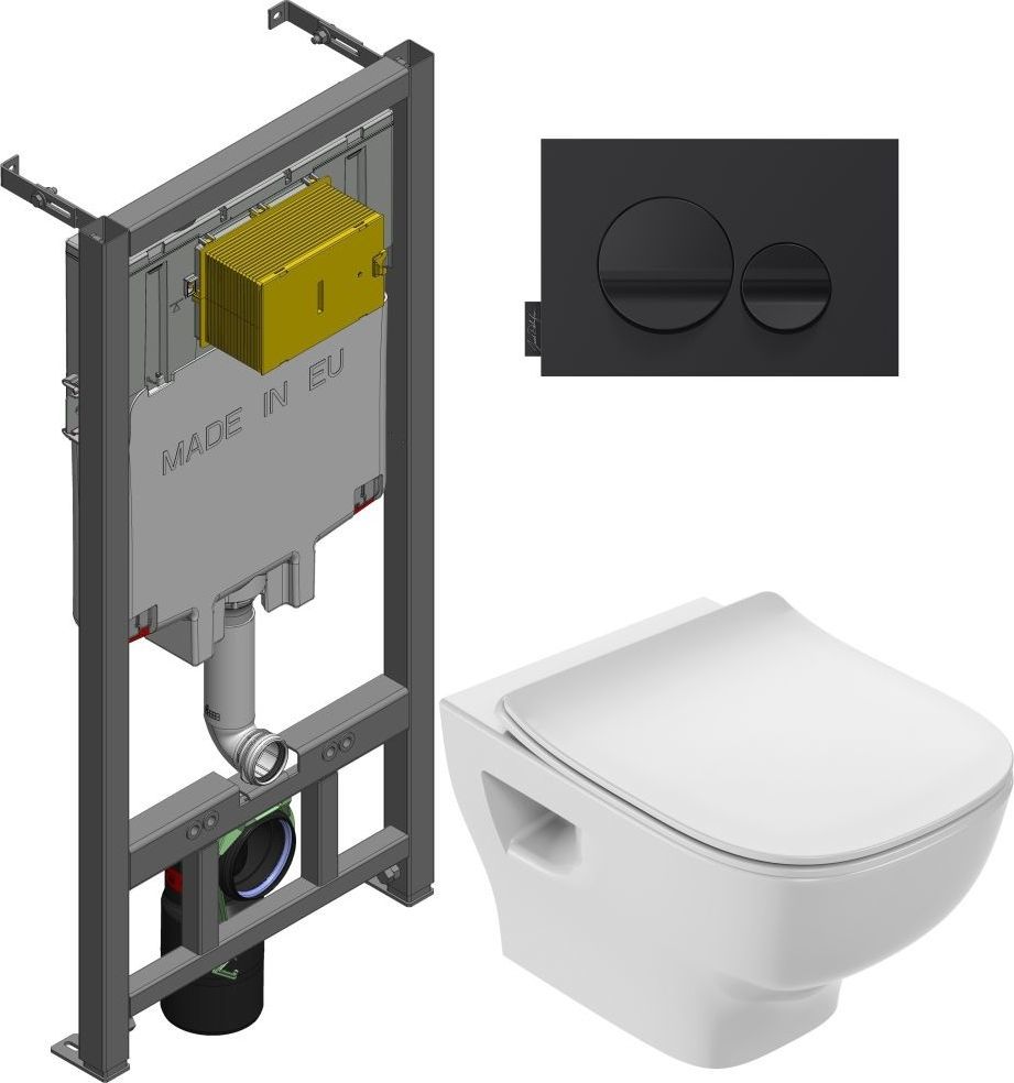 Инсталляция Jacob Delafon + подвесной унитаз безободковый Struktura EDE102 + быстросъемное сиденье с крышкой микролифт Struktura E20606 + кнопка смыва E20859-7-BMT, черная.