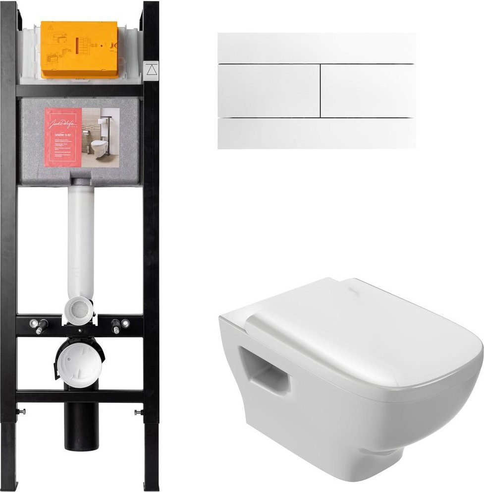 Инсталляция Jacob Delafon + подвесной безободковый унитаз Struktura + быстросъемное сиденье с крышкой микролифт + кнопка смыва, цвет белый.