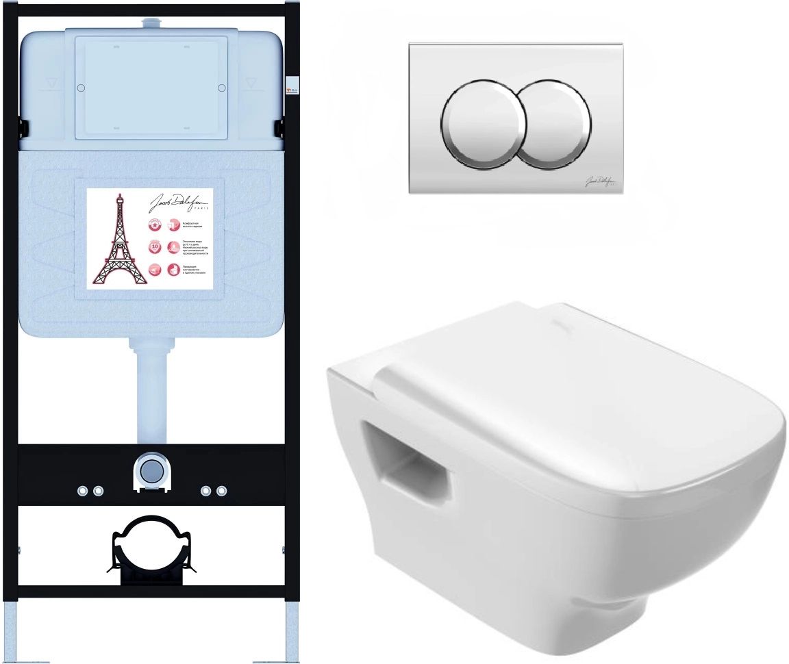 Инсталляция с подвесным безободковым унитазом Jacob Delafon Struktura EDE103-00, сиденье с крышкой микролифт