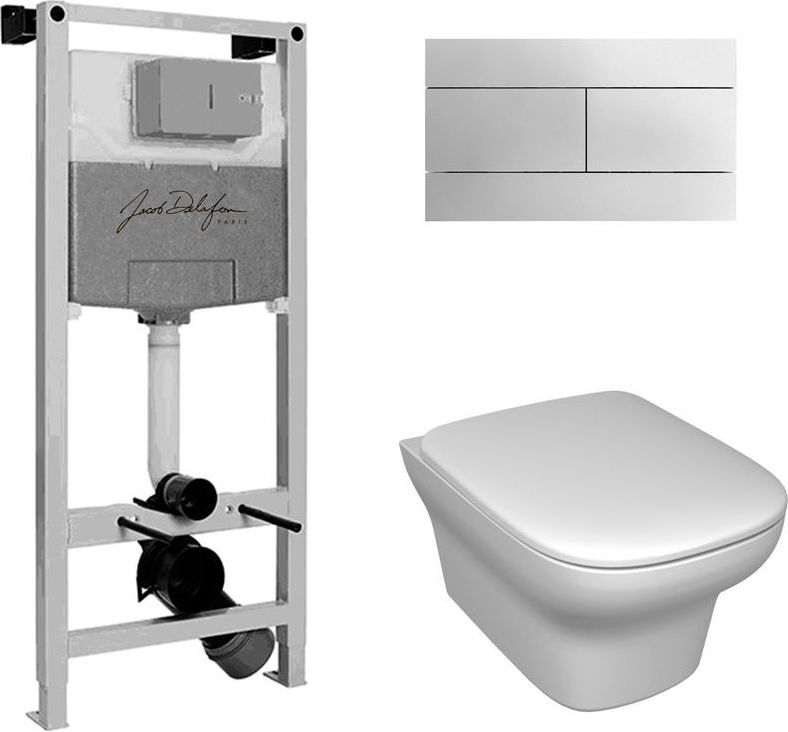Инсталляция Jacob Delafon E21928RU-CP + подвесной безободковый унитаз Vox EDM102-00 + тонкое сиденье с крышкой микролифт Vox E20142-00 + панель смыва, цвет хром.