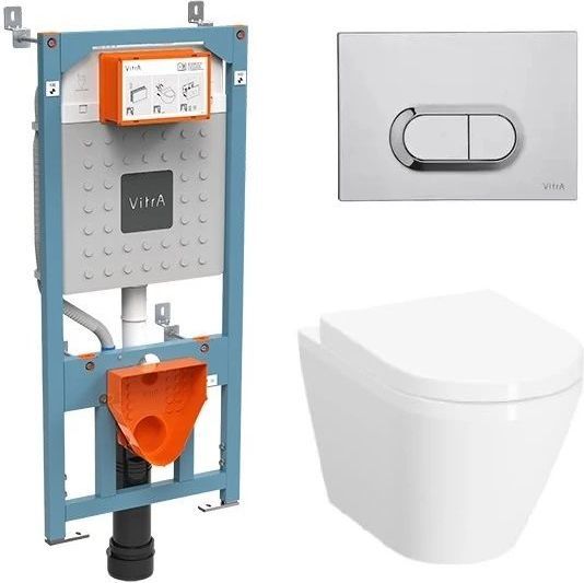 Комплект: инсталляция Vitra Integra Round L-Box, кнопка смыва хром, подвесной унитаз Vitra, сиденье с крышкой микролифт.