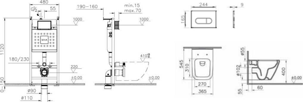 - Механическая Инсталляция VitrA, совместима с любыми моделями подвесных унитазов