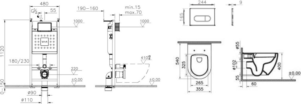 - Механическая Инсталляция VitrA, совместима с любыми моделями подвесных унитазов