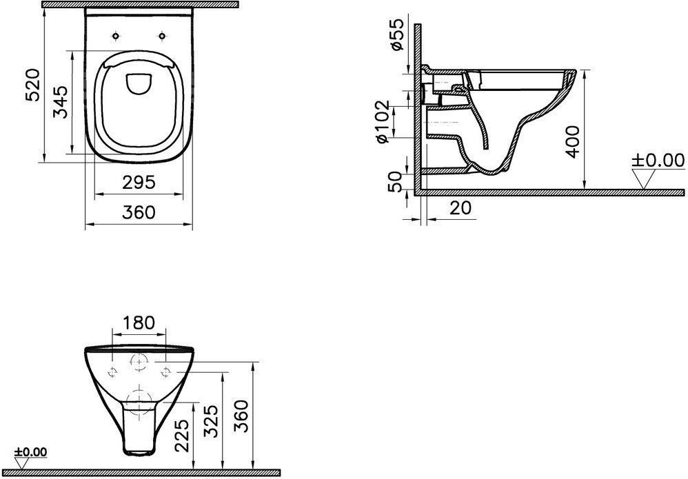 Комплект: инсталляция Vitra S20 L-Box, кнопка смыва хром, подвесной унитаз Vitra, сиденье с крышкой микролифт.