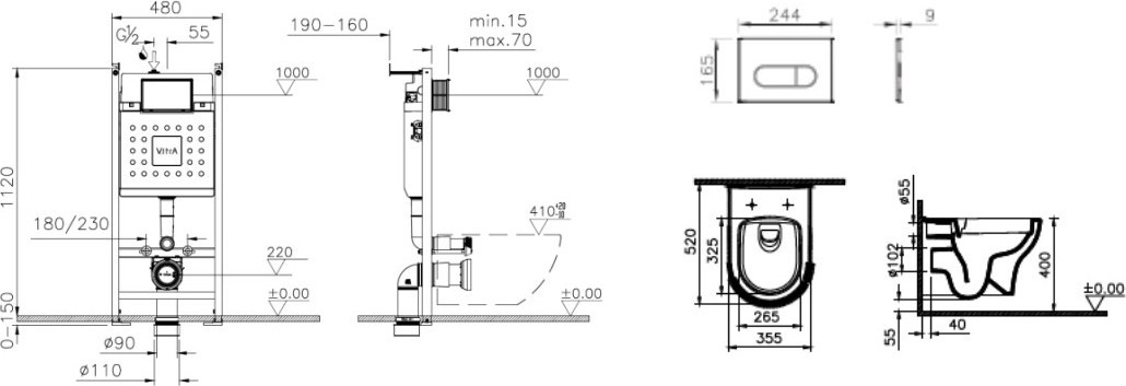 - Механическая Инсталляция VitrA, совместима с любыми моделями подвесных унитазов