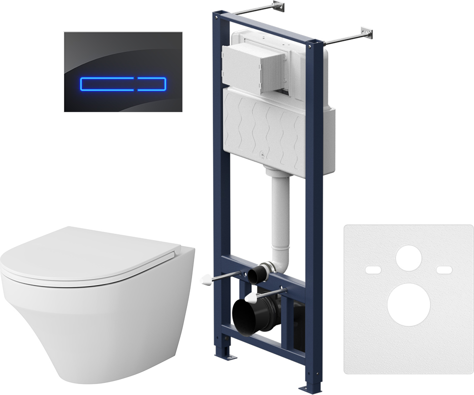 Полностью готовый к установке комплект: система инсталляции с клавишей подвесной унитаз сиденьем. Не разборная рама из стального профиля выдерживает нагрузку до 400 кг. Полностью изолированный бачок с качественной двухрежимной смывной арматурой - комфортное использование благодаря низкому уровню шума - менее 20 Дб. Укомплектован сенсорной клавишей в черном цвете. В комплекте все необходимые патрубки и крепления а также прокладка между унитазом и стеной - звукоизоляция. Выверенный геометрический дизайн - ровные поверхности в сочетании с четкими гранями - отмечен премиями Iconic Design и If Design. Полностью скрытые крепления скрытый фановый выход обеспечат эстетическую чистоту дизайна и лёгкость в уходе за керамикой. FlashClean - новое поколение безободковых унитазов без использования пластика: 100% гигиеничности 0% брызг. В комплекте быстросъемное сиденье из дюропласта с функцией микролифт. Материал сиденья дюропласт устойчивый к появлению царапин в сочетании с креплениями из нержавеющей стали гарантируют долговечность сиденья. Механизм плавного опускания рассчитанный на 100 000 закрываний - комфорт в использовании механизм быстрого снятия - легкость в уходе за сиденьем и керамикой.
