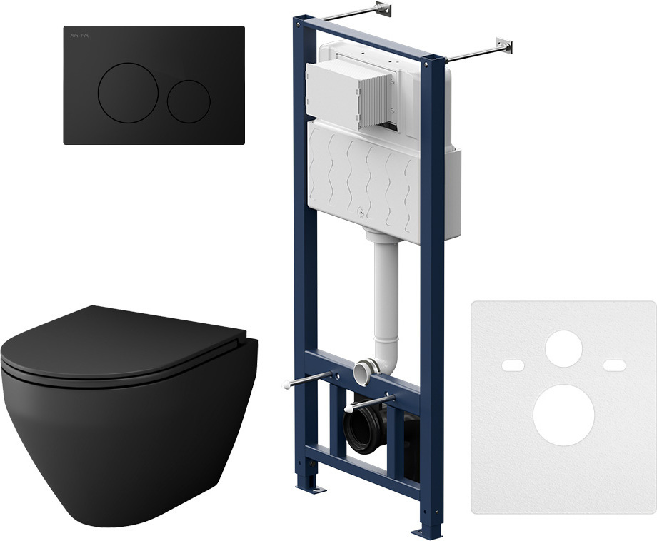 Инсталляция с подвесным унитазом Am.Pm Spirit V2.0 FlashClean IS49038.701700MB, шумоизоляционная прокладка, сиденье с крышкой микролифт, клавиша смыва - чёрный матовый.