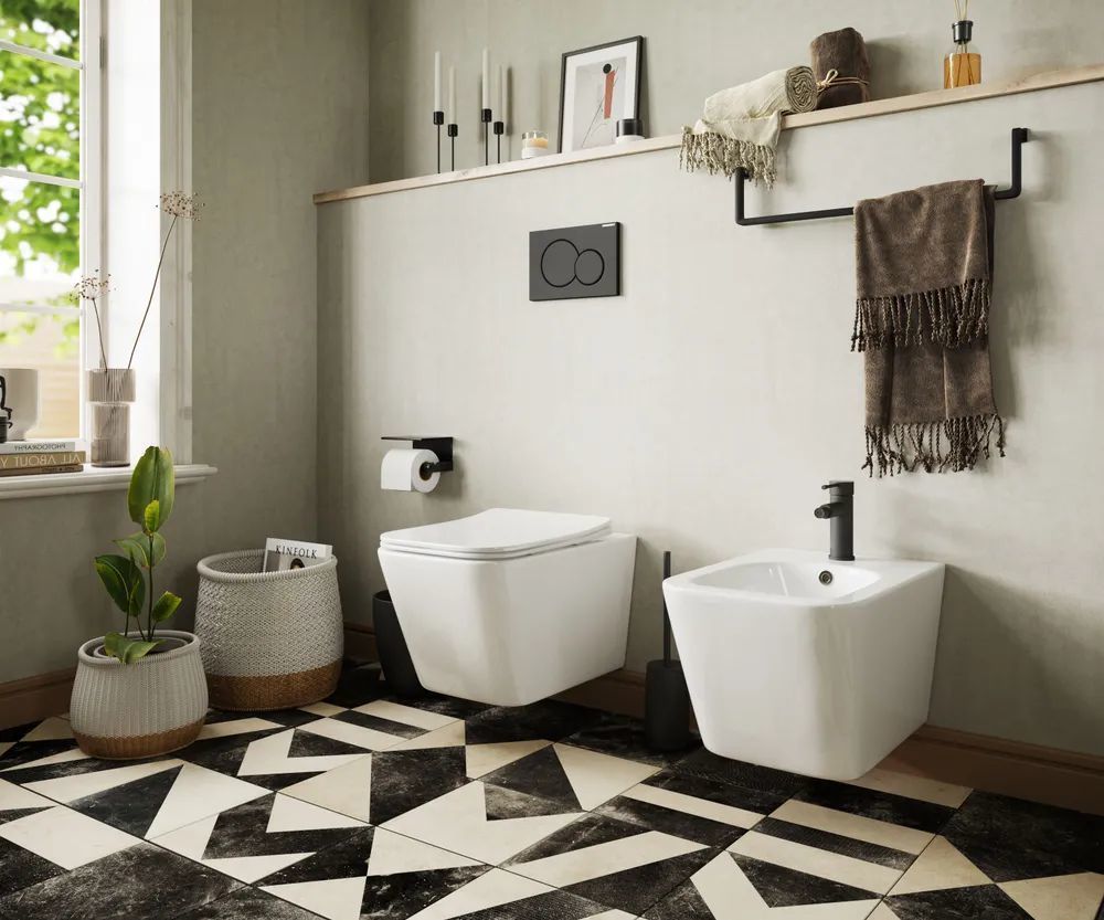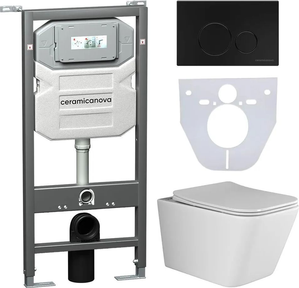Сет 4 в 1: Подвесной унитаз Metric Rimless CN3007 + Шумоизоляционная панель для инсталляции CN1000 + Система инсталляции для унитазов Ceramicanova Envision с кнопкой смыва Round цвет чёрный матовый и креплениями CN1001B.