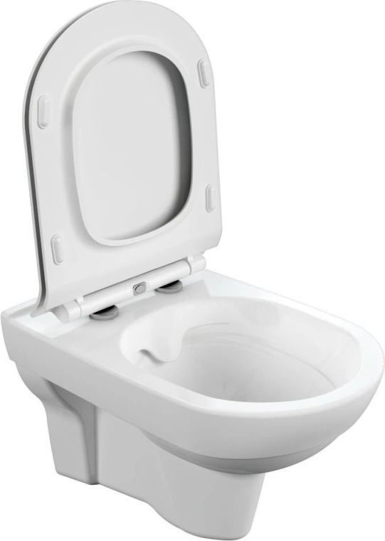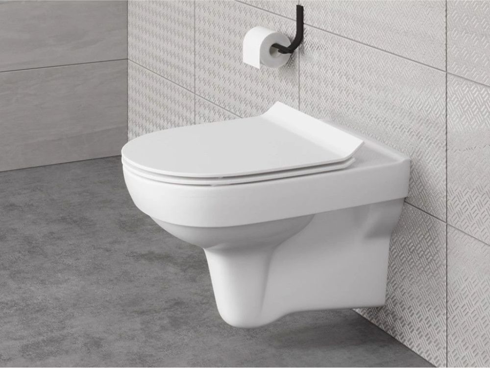 Инсталляция Link Pro с подвесным безободковым унитазом City Clean ON с ультратонким антибактериальным сиденьем из дюропласта с функцией плавного закрывания и легкосъемом, и кнопкой смыва Estetica белого цвета.
